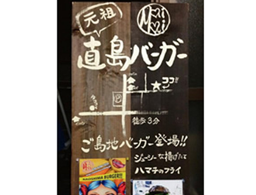 直島バーガー640円~、生ビール300円~、各種ソフトドリンク300円~