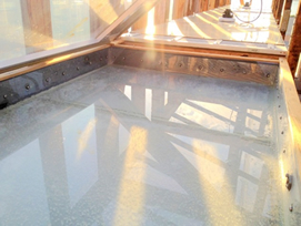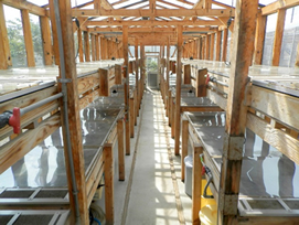 - かん水をケースに入れ、太陽の熱だけで徐々に結晶させていきます。