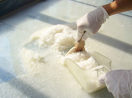 - 結晶化は始まると早い為、大きくなりすぎないように「塩寄せ」作業をして、