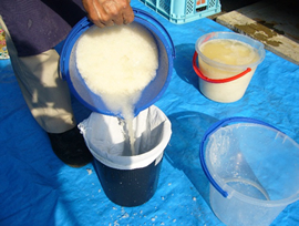 濃い塩水(かん水)を作ります。
