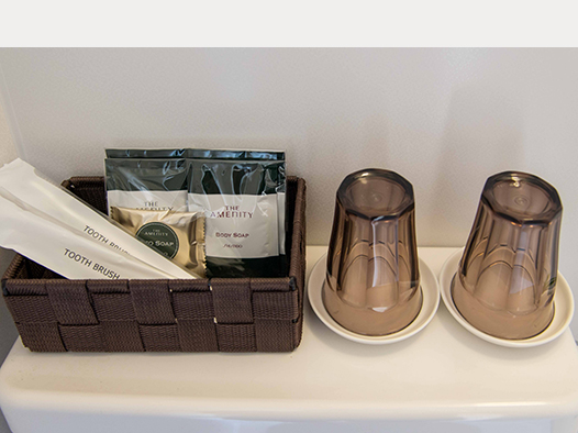 | 【アメニティ】 | 歯ブラシ、フェイスタオル、バスタオル、シャンプー、コンディショナー、ボディソープ、ハンドソープ、お茶・コーヒー、軽食 |