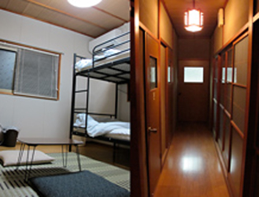| 【Room】 | 1 Western-style room (bunk bed), 3 Japanese-style rooms (4.5 tatami / 6tatami / 8 tatami) |